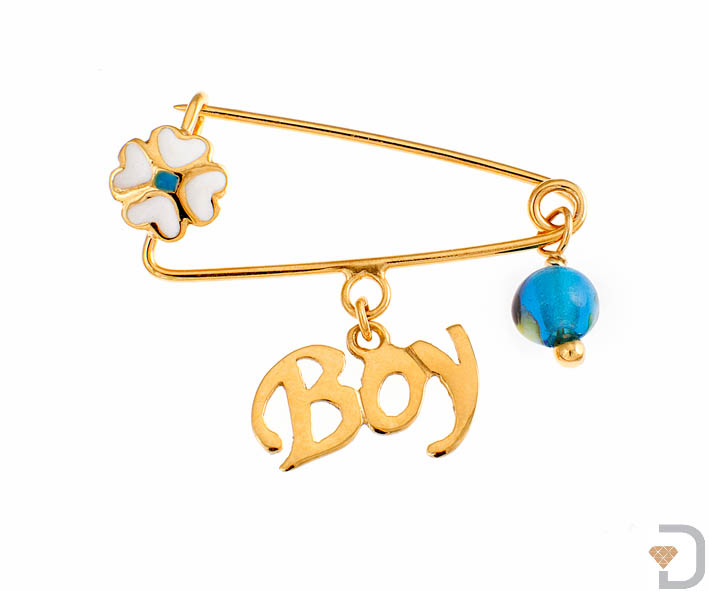 Παιδική παραμάνα ασημένια επιχρυσωμένη “Boy” με σμάλτο, τετράφυλλο τριφύλλι και ματάκι .